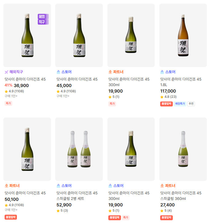 국내 시중 가격은 약 45,000원으로 형성되어 있으며, 주류 전문점이나 일부 온라인 채널에서도 비슷한 수준을 유지합니다. 해외 직구의 경우 약 37,000원 선에서 구매가 가능해 가격적인 메리트가 있습니다. 일본 현지 가격은 2천 엔대 중반으로, 여행 시 구매하면 가장 합리적인 선택이 될 수 있습니다. 동일한 제품임에도 구매 경로에 따라 가격 차이가 발생하므로, 여행 일정이나 직구 가능 여부를 고려해 선택하는 것이 좋습니다.